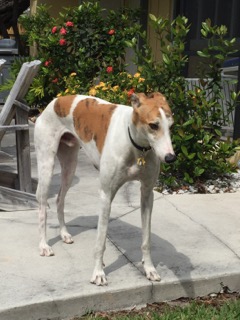 This event was held at a friend’s home. The dogs, which included two greyhounds, a lab, a shorthaired pointer, a golden, and a couple of designer dogs from the shelter, were very well behaved until one of our friends urged her dog to jump into the canal. Watching the first dog jump was all it took. It wasn’t long before another one took the plunge. Emma’s eyes were like saucers as she observed these antics. With her body language on point, she stretched those long legs and took the leap - and went down. She eventually did come back up. At which point, her helicopter parent (me) started yelling for my husband to get her out. She swam over to him with no problem, and he helped her up the doggy ladder. No easy climb for those long legs. I, at least, found out that she knows how to swim.
