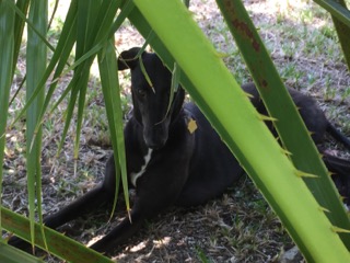 This was Emma’s first experience in the Keys. Possibly because of her youth, everything she sees, smells, and feels makes itself considerably exciting. The creatures slinking along the ground or on tree limbs, and the cooling palms she lays under are all worthy of her attention. On walks, smells of the native grasses and trees stimulate her investigations.