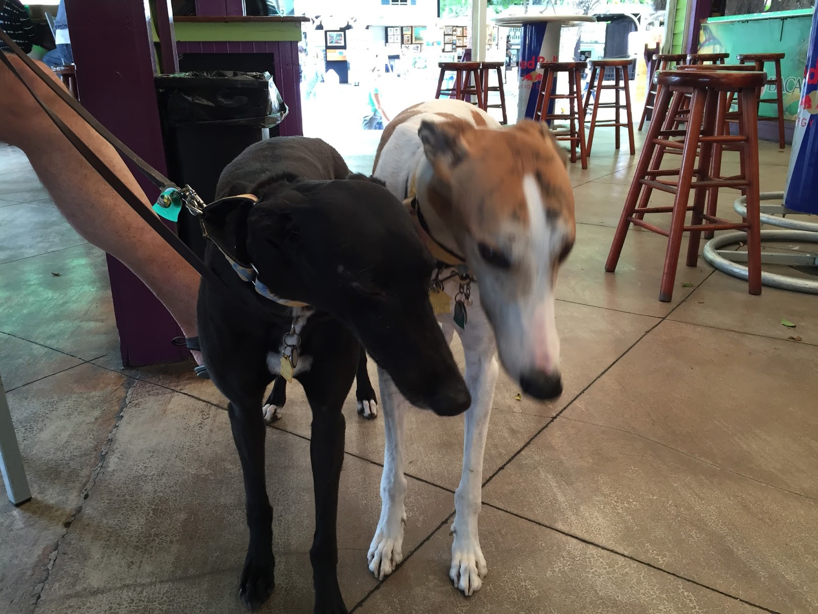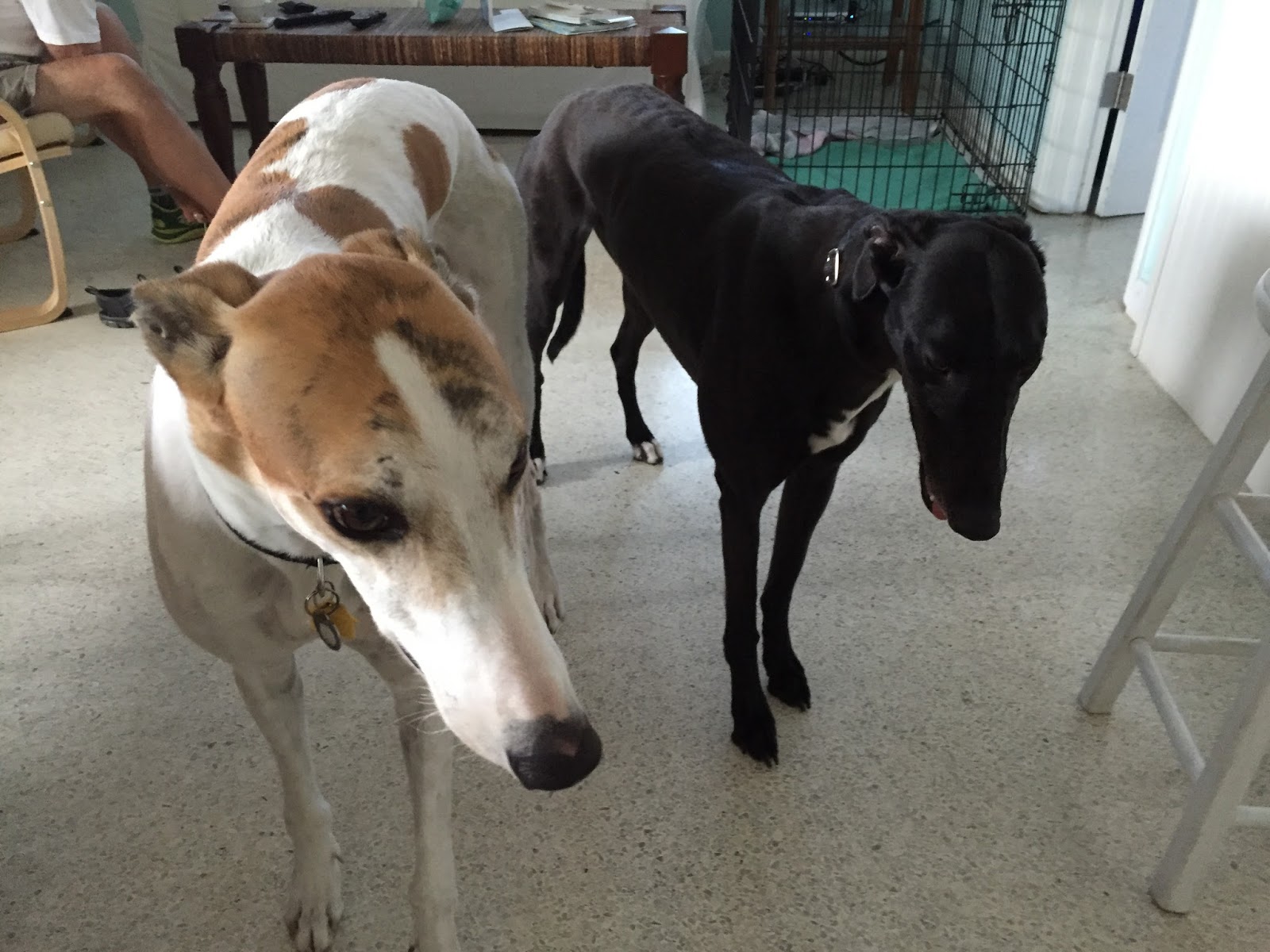 Another thought is the number of black dogs to the general population. The black color in greyhounds is common. Randomly, I looked at a greyhound rescue site that had 32 greyhounds available for adoption. Nine of those were black. Having a number of varied, lighter colored dogs available may pull adopters awareness away from the lovely black greyhounds. When at meet and greets, people comment first on how beautiful Kiowa, our white, red spotted grey, is, and then they see Emma, who’s personality and beauty they realize is stand out.