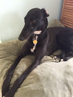 When my husband and I decided to adopt our first greyhound, color was the last consideration. We asked for a female, and that was that. On the day we went to pick up our dog, several females were available. One at a time, the dogs were brought out for our inspection. Previously, I had thought that a fawn colored dog would be my choice. But ultimately, we went home with our little black girl. We were fortunate to be able to meet each dog and experience a little of her personality.