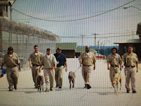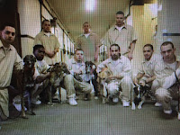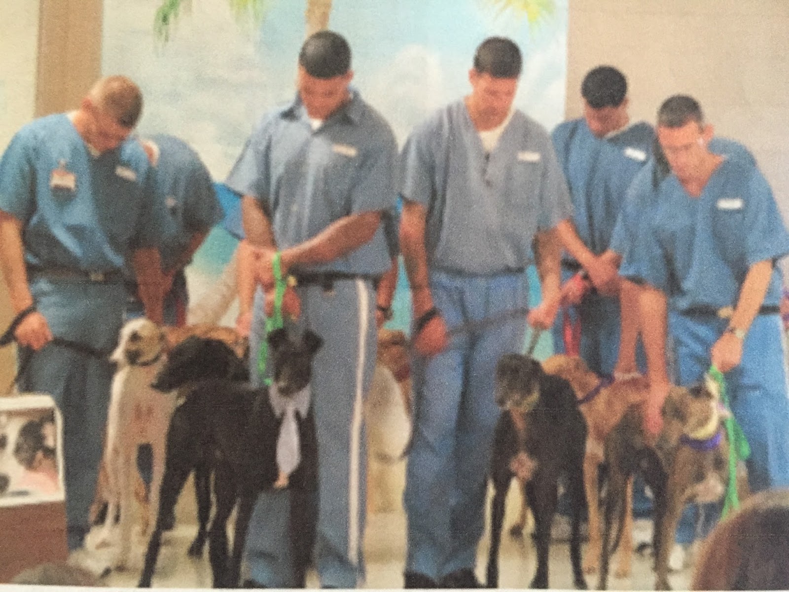 The prison programs choose inmates that are specially selected and have a desire to work with animals. These inmates know that to remain in the program depends on their continuing efforts toward positive outcomes for themselves and their dogs. Two handlers are assigned to each greyhound, a primary handler and a back up handler plus several trainees. Most programs run for 6 to 8 weeks, and during that time, the greyhounds sleep with the inmates and learn their basic commands such as heel, sit, lie down, stay, come on recall, etc. The inmates are also responsible for grooming, clipping nails, brushing teeth, cleaning ears and administering medications.