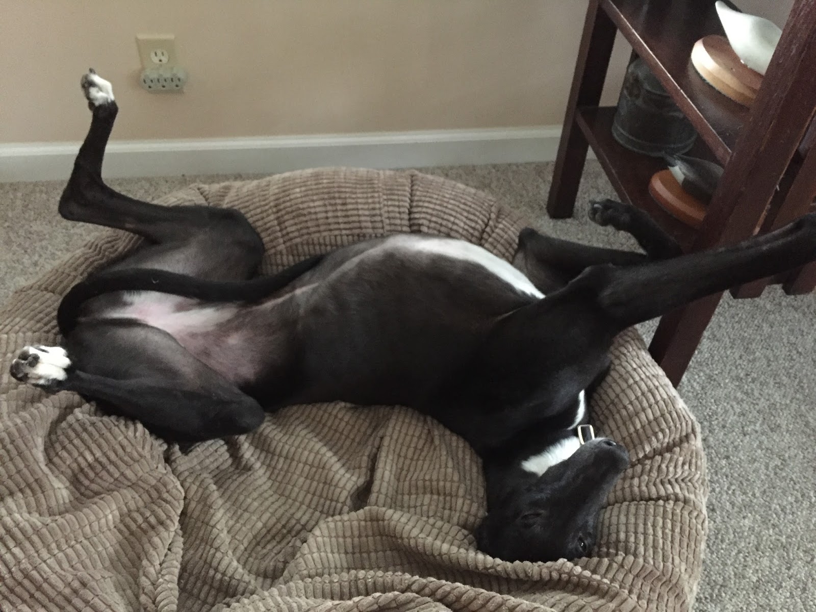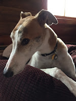 My husband and I and Rusty and Kazi,the greys before our present two, went for a short walk on a small beach not far from our home.  The beach was on a neck of land that was a distance from the main roads.  It was a warm day, but we knew our time there would be limited.  As we walked the beach, the dogs moseyed along side us, cooling their feet in the water.  Soon Kazi began to lag behind.  As I turned to her, I saw what I thought was her sticking her nose in the water.  Close to her nose seemed to be a foam. (I later realized she had vomited.)  As I looked to coax her along, I noticed her panting and staggering.  Since I was sure she hadn't had a cocktail, I urged my husband to get the car.  And the mad dash began.
